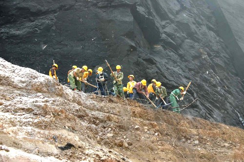 當(dāng)日,來(lái)自西安鐵路局略陽(yáng)段的30余名鐵路職工開(kāi)始排除因地震造成塌方的寶成鐵路109隧道南口山體上的危石,并安裝柔性主動(dòng)防護(hù)網(wǎng),力爭(zhēng)使寶成鐵路早日恢復(fù)運(yùn)行通車。 新華社記者都紅剛攝