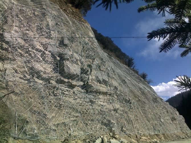 邊坡防護(hù)網(wǎng)分為主動(dòng)防護(hù)網(wǎng)和被動(dòng)防護(hù)網(wǎng),主動(dòng)防護(hù)網(wǎng)就像是用發(fā)泡聚苯乙烯把梨整個(gè)包起來(lái)一樣,但是主動(dòng)防護(hù)網(wǎng)主要用鋼絲繩網(wǎng)為主的各類柔性網(wǎng)覆蓋或包裹在需防護(hù)的斜坡或巖石上,降低坡面巖石因?yàn)轱L(fēng)化墜落或者滑坡等災(zāi)害造成的損害。被動(dòng)防護(hù)網(wǎng)是由鋼絲繩網(wǎng)、高強(qiáng)度鐵絲格柵網(wǎng)、錨桿、工字鋼柱、上下拉錨繩、消能環(huán)、底座及上下支撐繩等部件構(gòu)成。對(duì)防護(hù)區(qū)域的坡面進(jìn)行防護(hù)。當(dāng)主-被動(dòng)防護(hù)系統(tǒng)覆蓋于爆破開挖工作面上時(shí),便形成了防止爆破飛石危害的柔性安全防護(hù)系統(tǒng)。