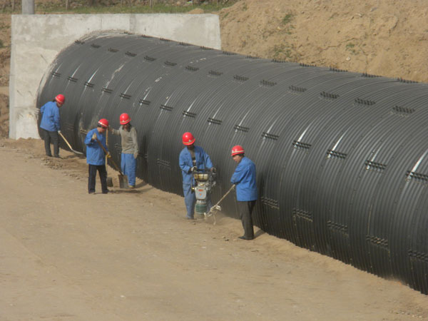 在一點(diǎn)河流及橋梁動工中,建筑材料需跨內(nèi)河運(yùn)輸送,日后橋基建成后還需求運(yùn)輸承載梁,所以務(wù)必修筑短時間之內(nèi)便道,以便捷運(yùn)輸,但有時候河內(nèi)終年流水繼續(xù)不停,動工條件困難,使用鋼波紋涵管時, 在河內(nèi)倒入片石,加30cm砂礫墊層軋實(shí),管側(cè)及頂部悉數(shù)澆筑砼,與水泥小橋相形,即縮減了工期,又減低了本錢。相相比較浮橋在安全性及承載方面也有非常大 的進(jìn)步提高。 我國家大計(jì)一個石炭大國,受挖掘條件的限止,地下采空可形成地上不同程度的減退,發(fā)生翹棱均沉降,對普通士敏土建構(gòu)物易發(fā)生裂紋`、錯位等不同程度的毀傷,金屬波紋涵管是 一種柔性建構(gòu),波紋管在建構(gòu)上具備橫向償還位移的優(yōu)秀特別的性質(zhì),可充分施展鋼材抗拉功能強(qiáng),變型功能優(yōu)良的獨(dú)特的風(fēng)格,具備較大的抗變型和抗沉降能力,尤其適應(yīng)于軟 土、脹大土地、濕陷性黃土等地基承載力較盆地區(qū)范圍和地震多發(fā)地區(qū)范圍。和管相連完成后的在場涂柏油能絕對防止終年水泡和酸堿生土的剝蝕,保證使用生存的年限及擔(dān)任職務(wù)的人設(shè)施 的安全。在一點(diǎn)尤其地區(qū)范圍及地段,因?yàn)槁N棱均沉降可對涵洞發(fā)生不同程度的毀傷,如果在高填方地段挖出從新修恢復(fù)工作期長,使道路中止影響車輛通行,又添加花銷, 如果使用士敏土圓管動工相比較困難,圓管涵與舊拱涵核心補(bǔ)充士敏土沙漿困難。選用波紋涵管可在涵洞外相連好后推動,相連處無縫子;在管側(cè)開孔,以便補(bǔ)充片石和噴 筑沙漿添加管涵和原涵洞的群體性;別的金屬波紋管涵管體輕,易于動工;在動工中邊推動邊徹底整理地基,保證動工擔(dān)任職務(wù)的人的安全。