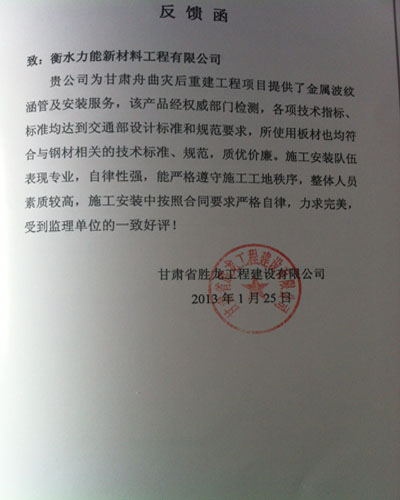 衡水力能新材料工程有限公司主要生產(chǎn)波紋涵管、鍍鋅波紋管涵、隧道加固波紋板等產(chǎn)品,公司創(chuàng)立于2008年,公司位于衡水市濱湖新區(qū)開發(fā)區(qū)。公司現(xiàn)注冊資金一億零五百萬元,年設(shè)計生產(chǎn)能力達(dá)2.5億元,成為國內(nèi)規(guī)模較大的波紋涵管,防護(hù)網(wǎng)生產(chǎn)企業(yè)。 公司自創(chuàng)建以來就堅持人為本、夯實(shí)質(zhì)量、持續(xù)發(fā)展、顧客滿意”的質(zhì)量方針,建立了科學(xué)完善的質(zhì)量管理與保證體系,F(xiàn)已形成以鋼波...