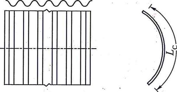 波紋板件長(zhǎng)度Lc—曲面波紋板件的弧長(zhǎng)